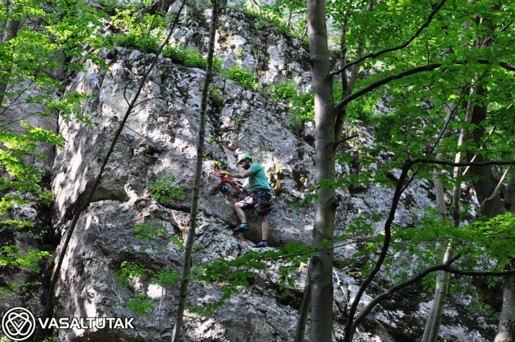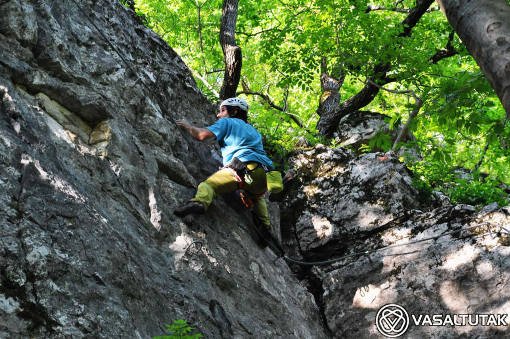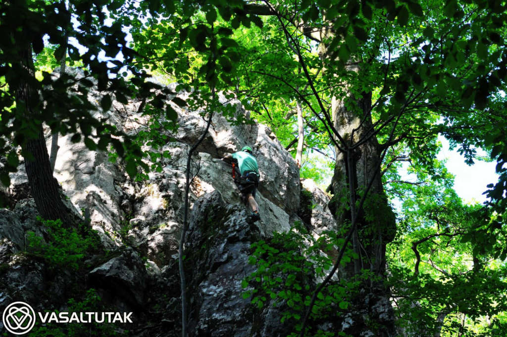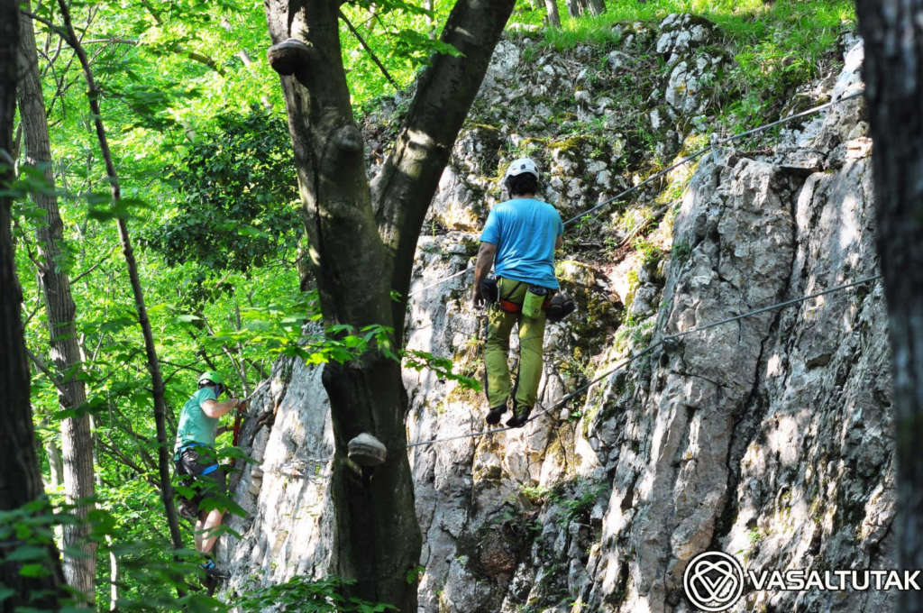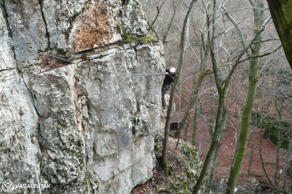 Szép és változatos sziklakörnyezetben vezet ez az érdekes vonalvezetésű út, két vietnámi híddal (7 és 23 m). Remek mászás, mely egyáltalán nem könnyű. A beépített lépéseket mellőzve eléri az E nehézségi fokozatot. Hossza 130, a szintkülönbség 40 méter, a mászásidő körülbelül 30-60 perc. Cuha-völgyi Vasalt Utakat a Tatabányai Alpin Sportklub kezeli. A “Kis-fal” 8-12 méteres, fogásgazdag útjaival szinte a kezdő tanfolyamoknak (3-6 nehézségi fokozat) van teremtve. A “Nagy-fal“-on 15-20 méter magas, komoly utak vezetnek változatos formakinccsel. Itt a 6-7 nehézség dominál, az utak meglepően technikásak, kellemes mászóélményt adnak. Az tetőáthajlás környékén van néhány nehéz (7 – 9- között), figyelemre méltóan szép sportmászó út.