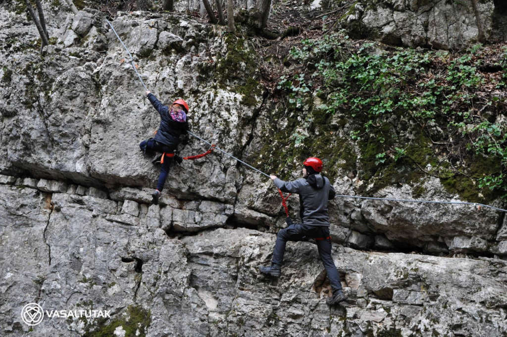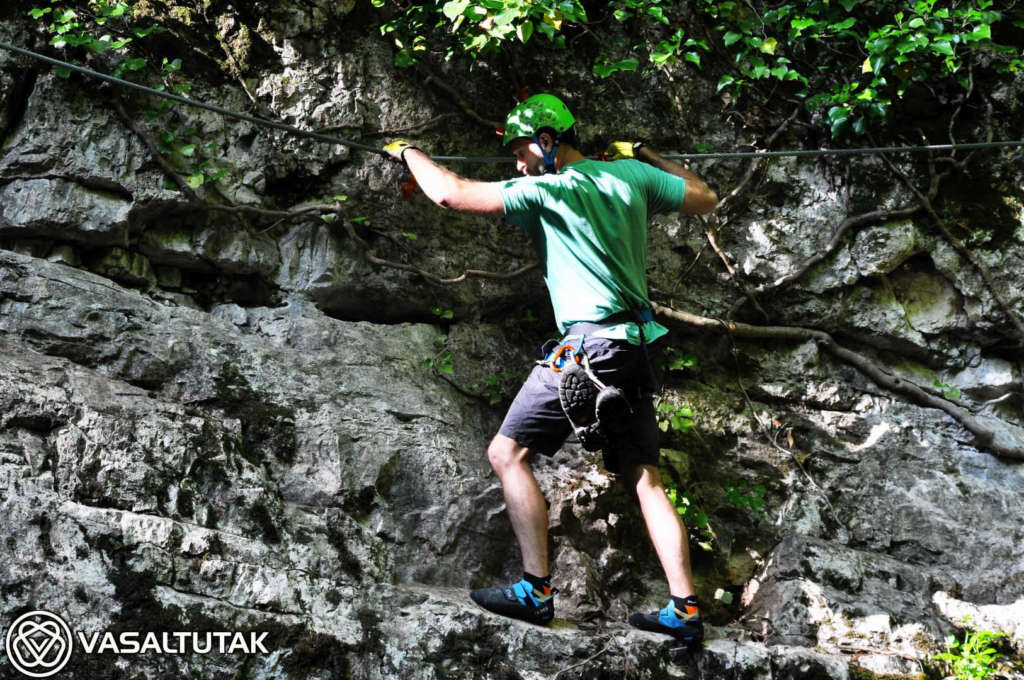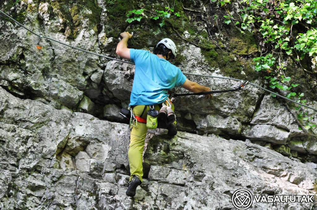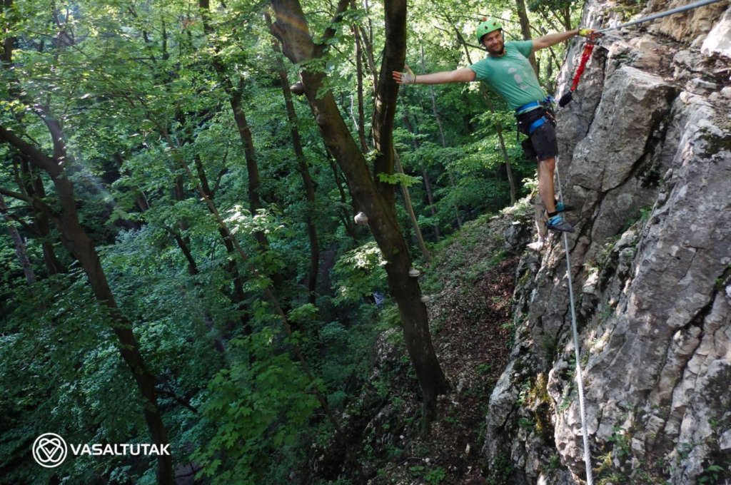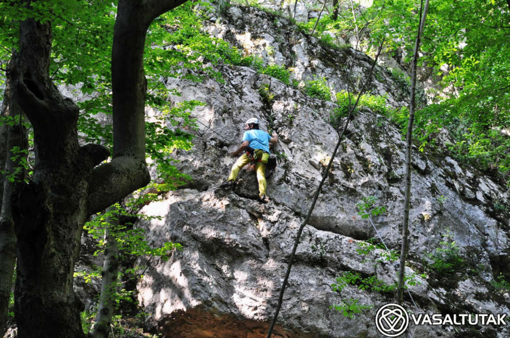 Szép és változatos sziklakörnyezetben vezet ez az érdekes vonalvezetésű út, két vietnámi híddal (7 és 23 m). Remek mászás, mely egyáltalán nem könnyű. A beépített lépéseket mellőzve eléri az E nehézségi fokozatot. Hossza 130, a szintkülönbség 40 méter, a mászásidő körülbelül 30-60 perc. Cuha-völgyi Vasalt Utakat a Tatabányai Alpin Sportklub kezeli. A “Kis-fal” 8-12 méteres, fogásgazdag útjaival szinte a kezdő tanfolyamoknak (3-6 nehézségi fokozat) van teremtve. A “Nagy-fal“-on 15-20 méter magas, komoly utak vezetnek változatos formakinccsel. Itt a 6-7 nehézség dominál, az utak meglepően technikásak, kellemes mászóélményt adnak. Az tetőáthajlás környékén van néhány nehéz (7 – 9- között), figyelemre méltóan szép sportmászó út.