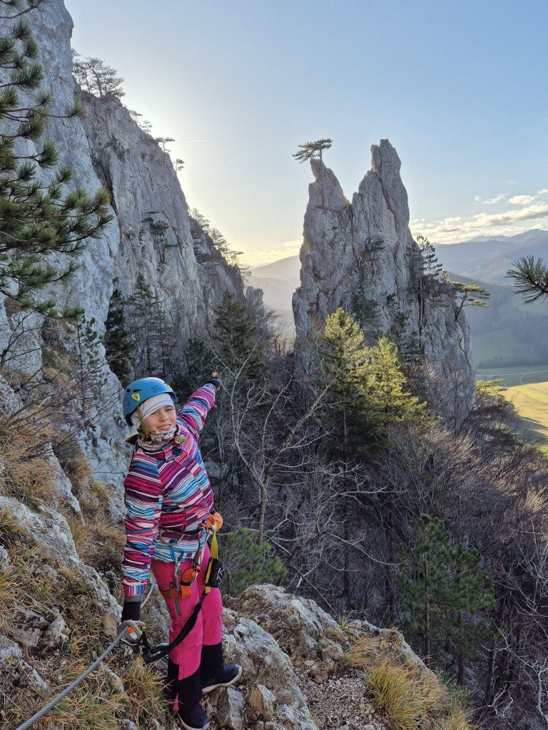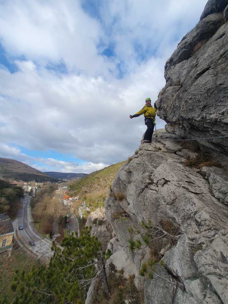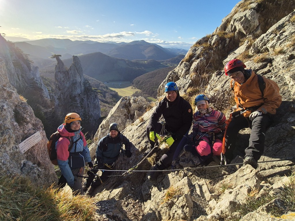Kiutazást követően délelőtt az egész évben jól mászható Mödlinger könnyű, de látványos gerincmászásával kezdünk: